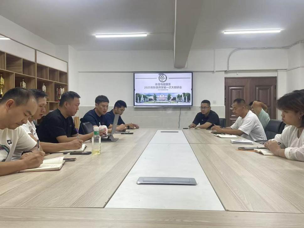 2025年8月28日13时30分,体育与健康系在系会议室召开本学期教研工作会议。会议由系副主任蔡涵主持,全系应到21人,实到21人,参会人员包括韩云鹏、刘恋、朱钦云等全体教师及教研室负责人。会议围绕教学大纲修订、优质课程申报、人才培养模式改革、课程教学改革及教学器材申购五大议题展开审议,旨在进一步规范教学管理,提升教学质量。